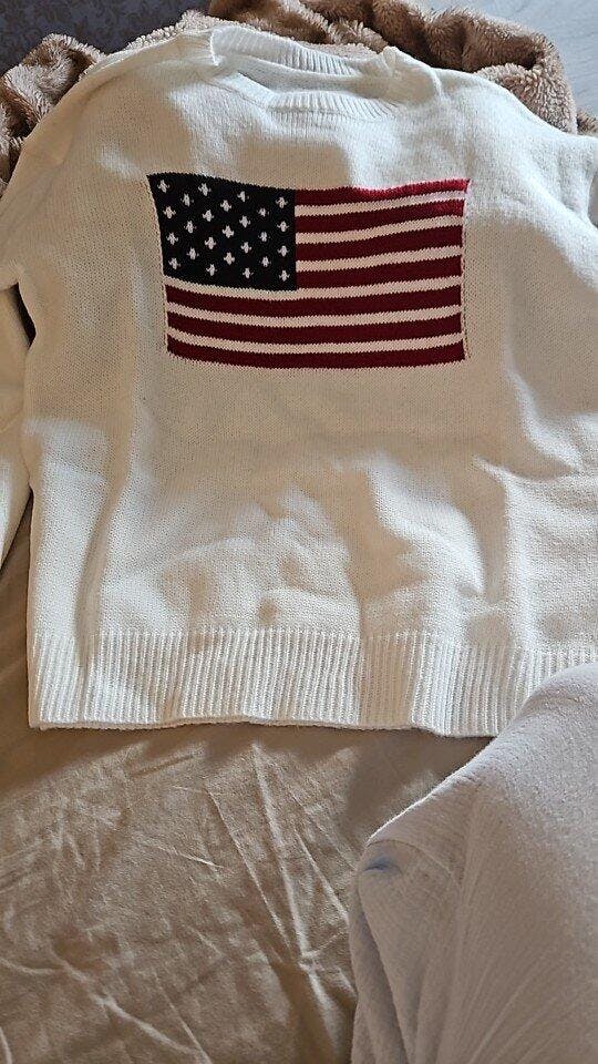 Devine US Flag Round Neck Long Sleeve Knit Top